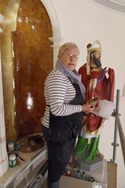 Ce travail a duré près de 35 heures où Mme GONDER était installée sur un échafaudage, la statue de Saint-Denis étant trop lourde pour être déplacée.